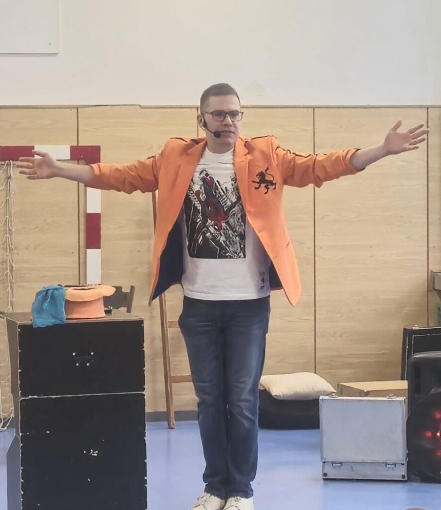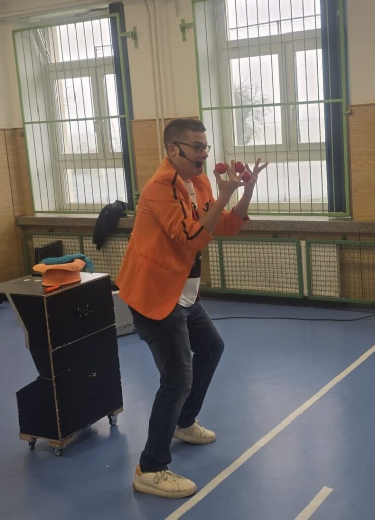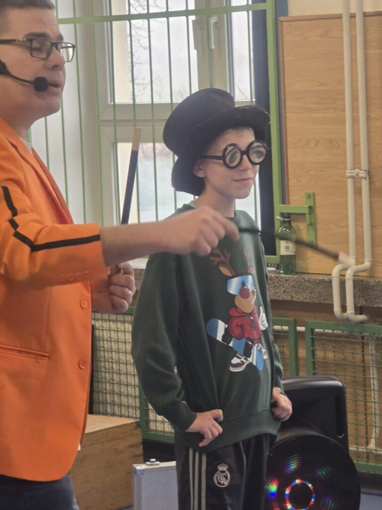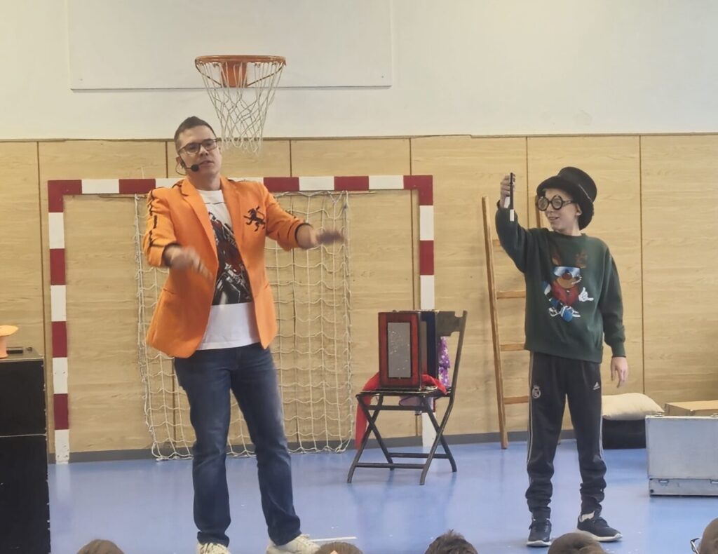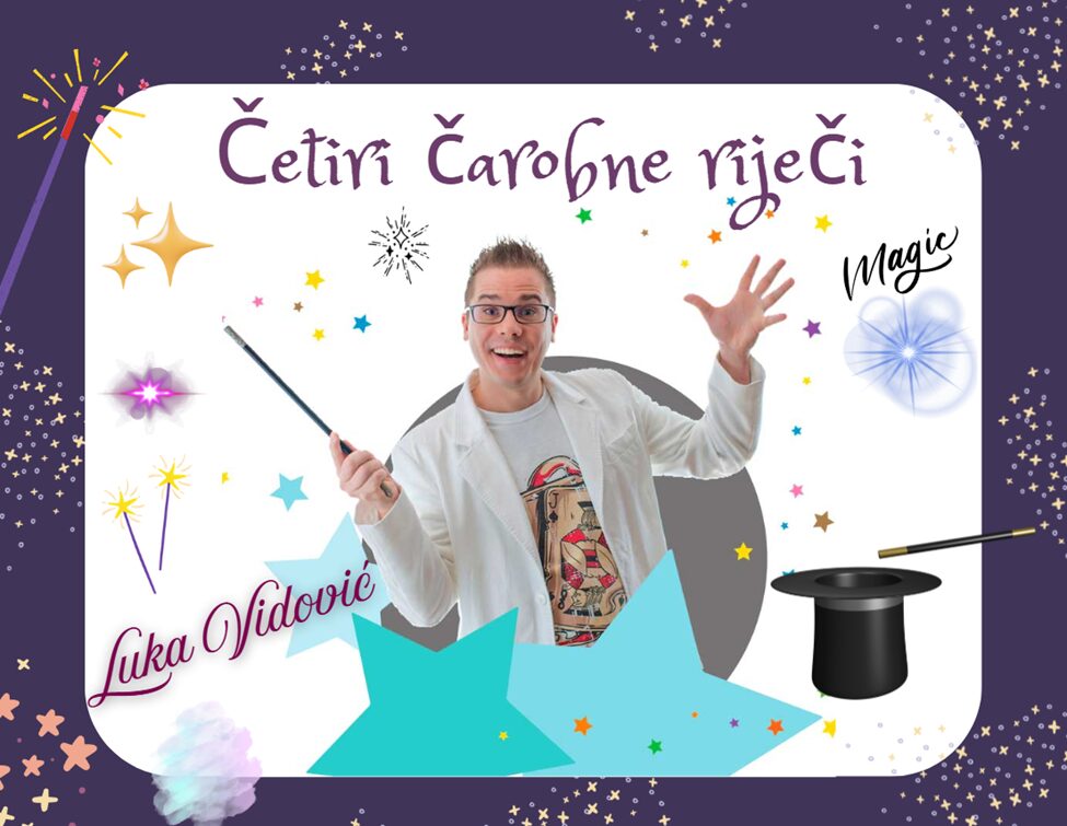 Važnost četiriju čarobnih riječi danas nam je istaknuo poznati hrvatski mađioničar Luka Vidović koji je u našu malu školsku dvoranu unio dašak čarolije. Izvodeći niz zanimljivih trikova, oduševio je učenike koji su aktivno sudjelovali u ovoj edukativnoj predstavi pomažući u stvaranju iluzije.