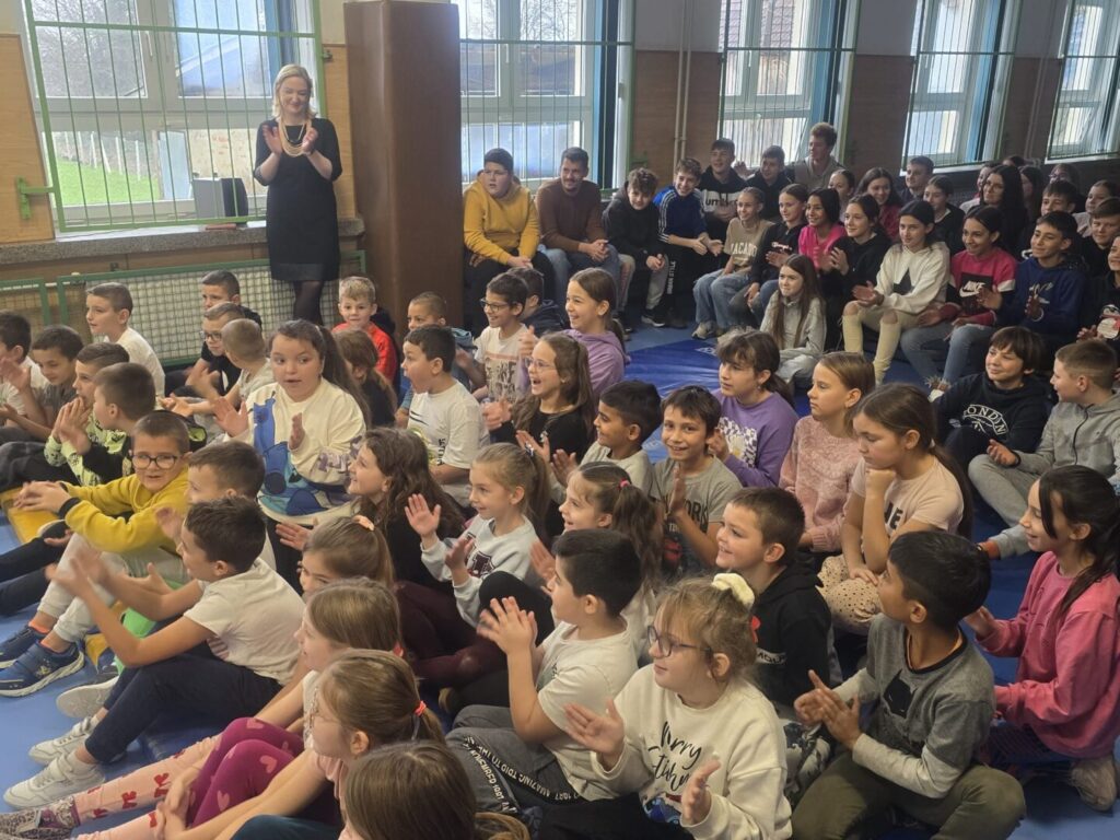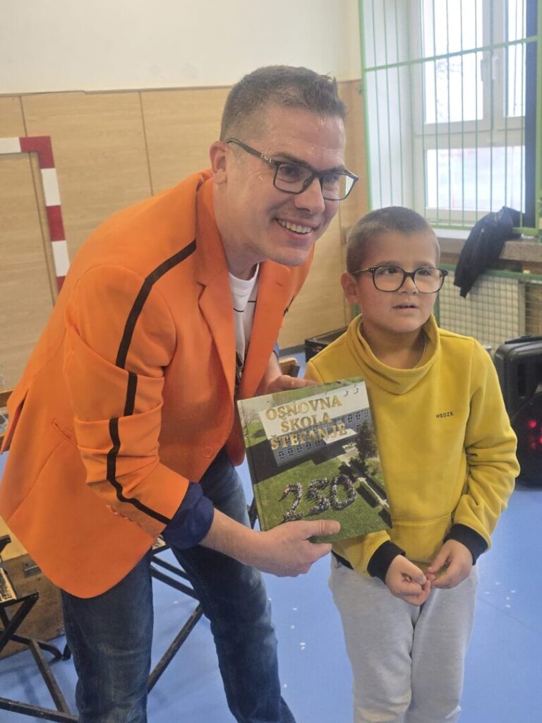 Na kraju predstave uslijedio je i poseban trenutak. Naime, u ime škole, mali poklon zahvalnosti Luki Vidoviću uručio je učenik prvog razreda Ivica Vidović.