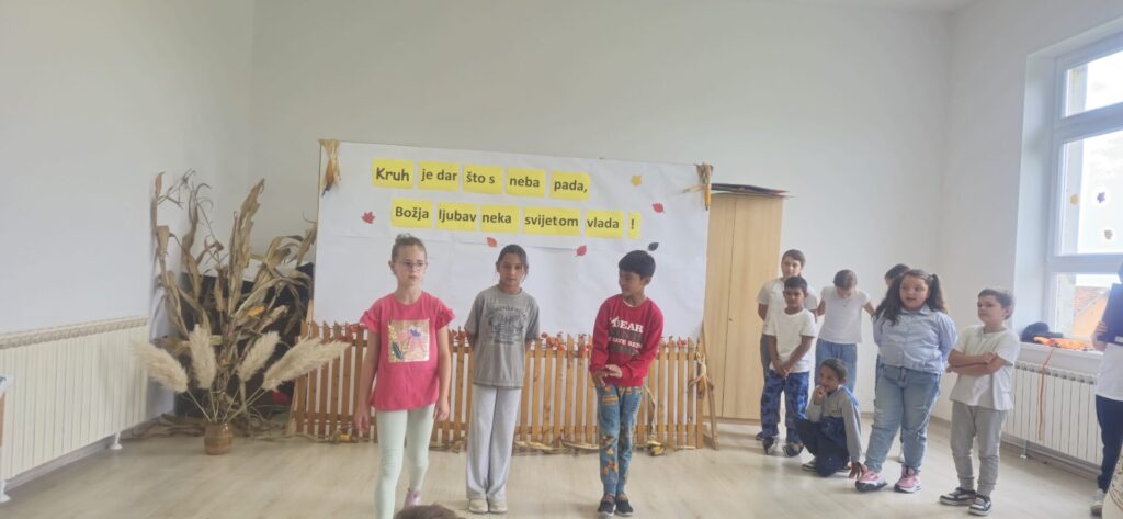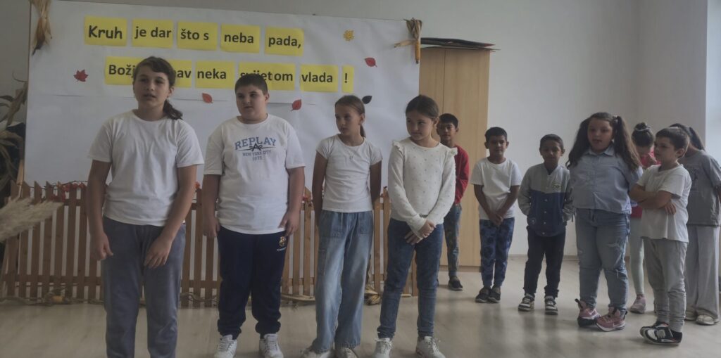 Laminački učenici i učiteljice Adela i Paula pripremili su kratak program te nas razveselili prigodnim pjesmama o jeseni, kruhu i plodovima zemlje. Nakon programa uslijedile su igre na otvorenom – graničar, nogomet, badminton…