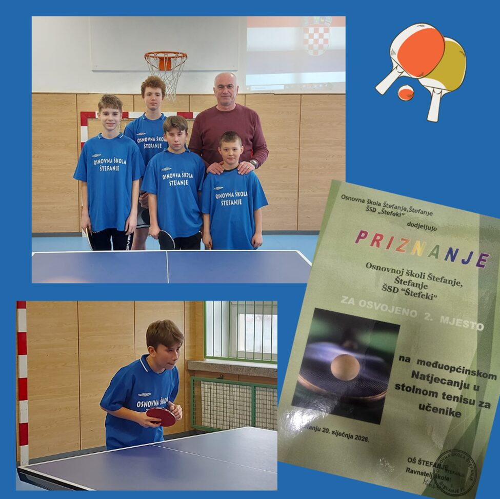 U utorak, 20. siječnja 2026., u školi je održano Međuopćinsko natjecanje u stolnom tenisu za dječake. Sudjelovale su četiri ekipe: ŠSD Mladost, ŠSD Vihor, ŠSD Štefeki i ŠSD Česmanski dabrovi. Za Štefeke su igrali Patrik Kepenjek, Tin Hrlić, Mislav Studen i Diego Petar Štefović te osvojili drugo mjesto i izborili nastup na županijskom natjecanju koje će se održati 29. siječnja 2026. u dvorani STK u Bjelovaru.