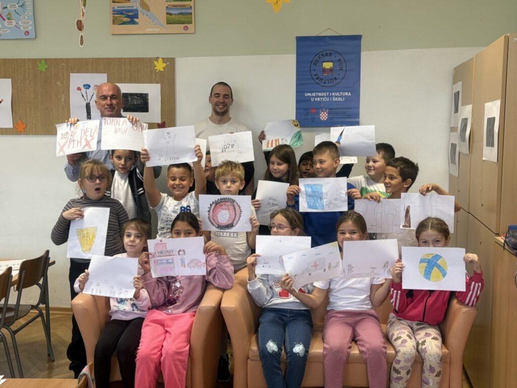 Danas je u našoj školi za učenike 3. razreda MŠ Štefanje i PŠ Laminac održana radionica Mali i veliki logo koju provodi Hrvatsko dizajnersko društvo u sklopu umjetničkog programa Ruksak pun kulture.