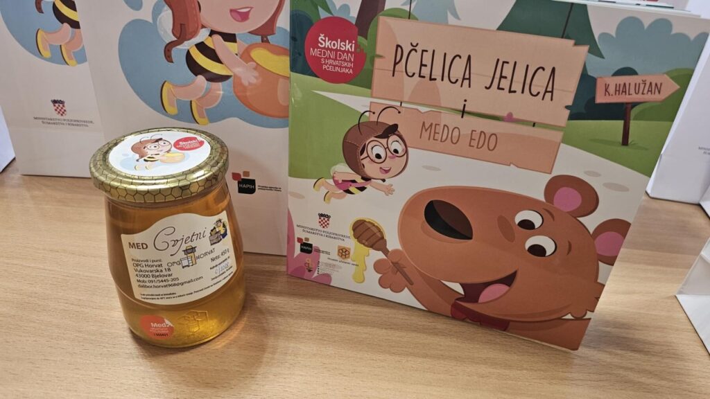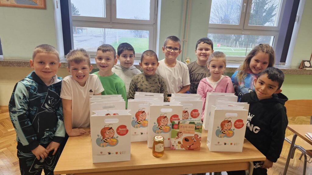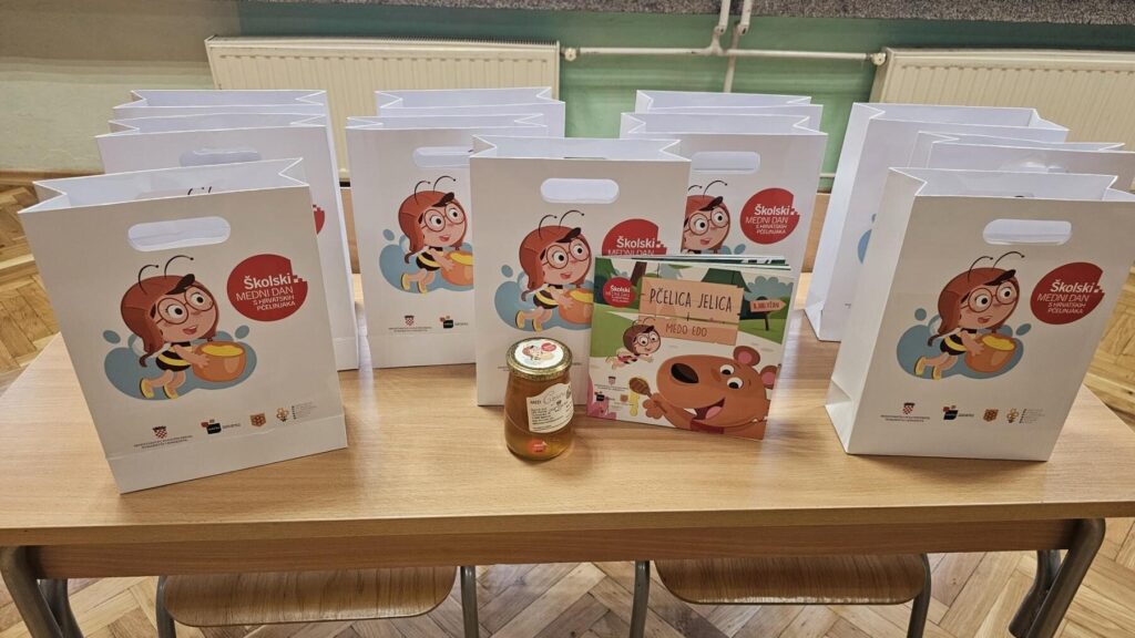 Učenici 1.r. danas su obilježili Školski medni dan. Dobili su na poklon slikovnicu “Pčelica Jelica i medo Edo” te staklenku meda. Uz to su puno toga naučili o velikoj važnosti pčela u održavanju ekosustava, kako se pravi med te dosta zanimljivih činjenica o pčelama poput one da jedna pčela tijekom svog životnog vijeka proizvede jednu žličicu meda.