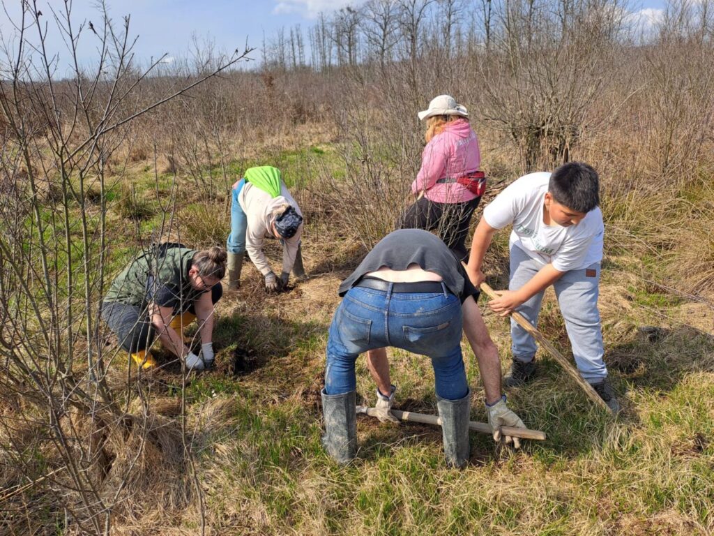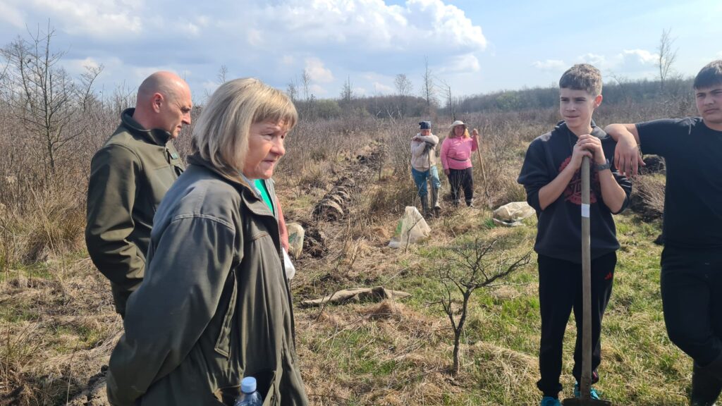 Nakon kratkog uvoda, naši su se učenici s velikim entuzijazmom primili posla. Podijeljeni u parove, jedni su kopali rupe za sadnice, a drugi sadili mlade hrastove. Iako je kopanje u vlažnoj zemlji punoj trave bilo prilično izazovno i rezultiralo je dvjema polomljenim štihačama, učenici se nisu dali obeshrabriti. Naprotiv, pokazali su nevjerojatnu upornost i radoznalost. Zanimalo ih kolika je plaća radnika koji se bave sadnjom, pa su neki čak zaključili da bi to mogao biti dobar posao nakon završene škole!